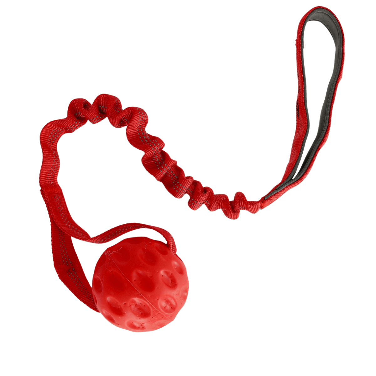 Den hårda bollen har en strukturerad yta som gör den enkel för små tassar att greppa. Tillsammans med den elastiska delen och vadderade handtaget blir det enkelt att kasta långt, leka dragkamp och hålla igång lekstunden utan att slita ut leksaken snabbt.
