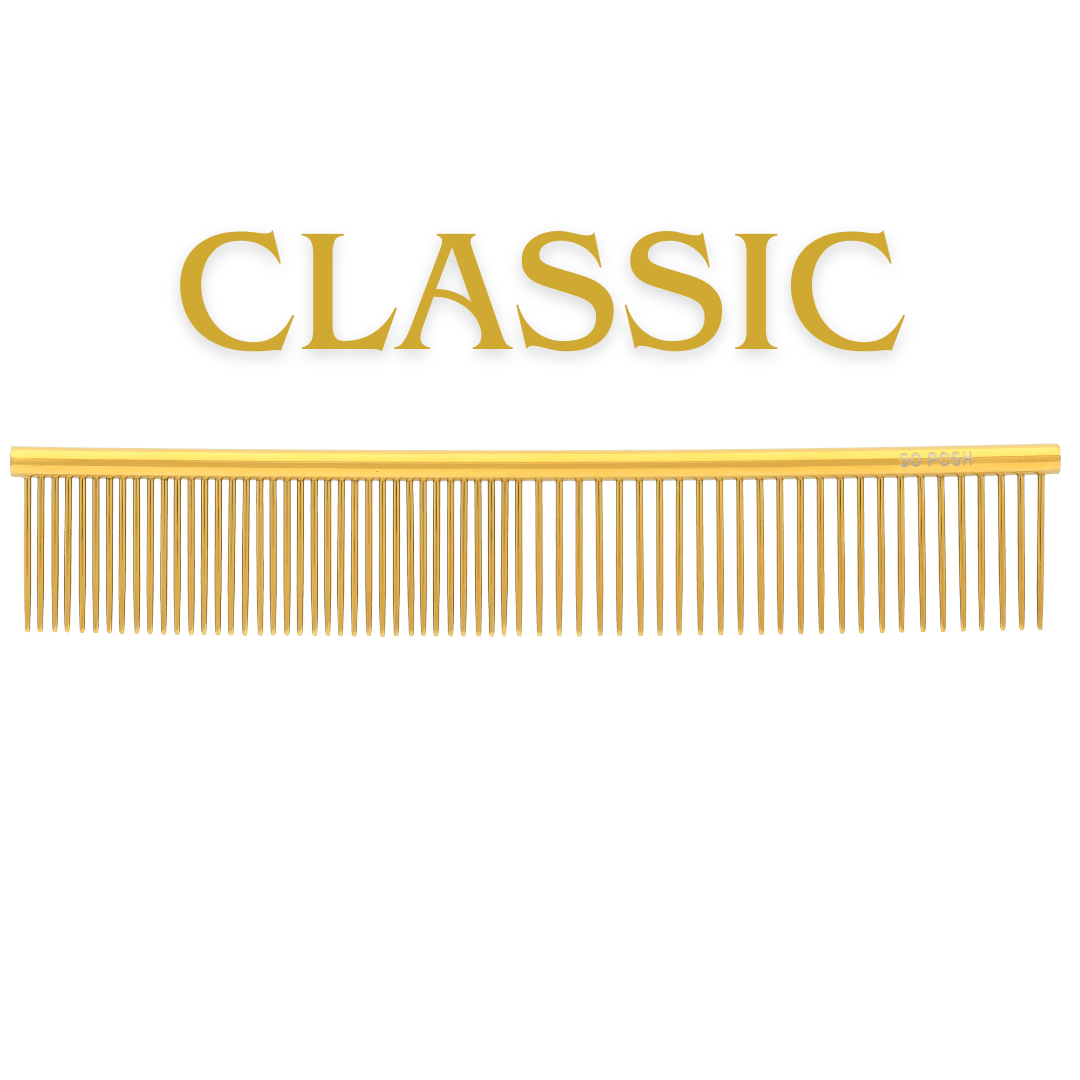 SO POSH kammar är en touch av lyx. Vi som älskar kammar - älskar dessa. De har rundade piggar och en tyngd som ger en skön känsla i handen. Uttrycket som hand i handske passar perfekt i detta sammanhang då kammen ligger perfekt i handen och ger dig kontroll. Kammen glider genom pälsen utan ansträngning och utan att dra i pälsen eller fastna. Utformad för ultimat smidighet, förvandlar pälsvården till en stressfri och njutbar upplevelse för både dig och din hund.